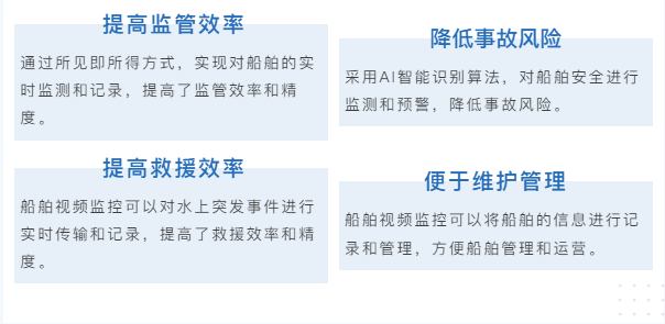 实现船舶甲板、机舱、货舱、驾驶舱、生活区等区域无死角实时视频画面监控。