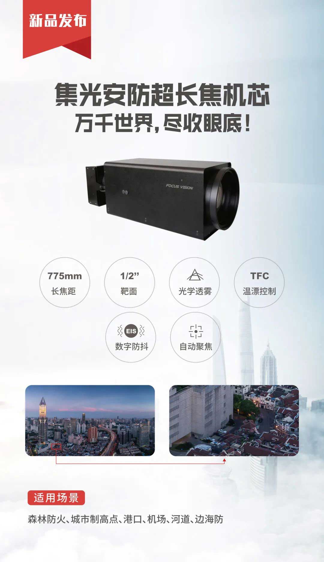 焦距21-775mm,37倍光学变焦,适用于远距离监控、云台产品监控