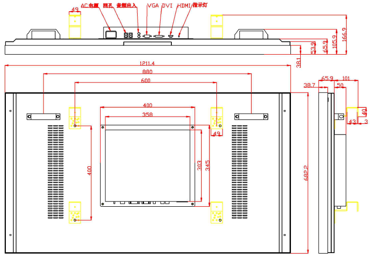 HDMI/DVI/VGA/AV/USB/RS232/ 电源接口