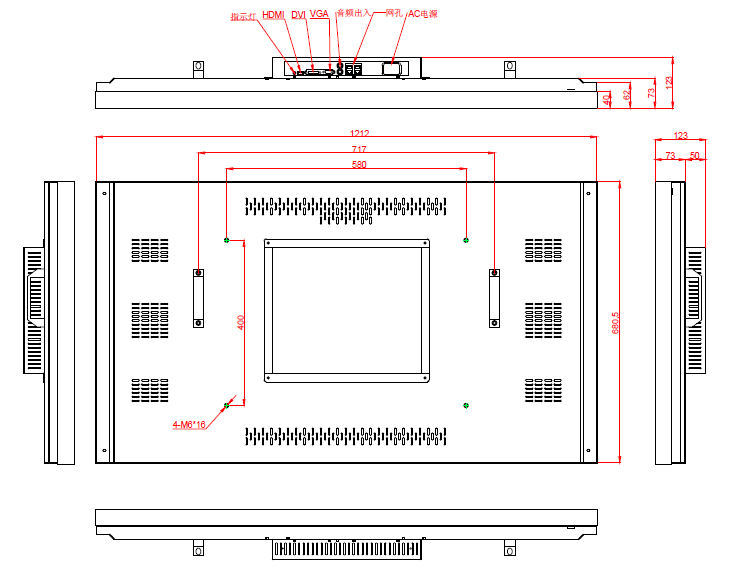 HDMI/DVI/VGA/AV/RS232/ 电源接口